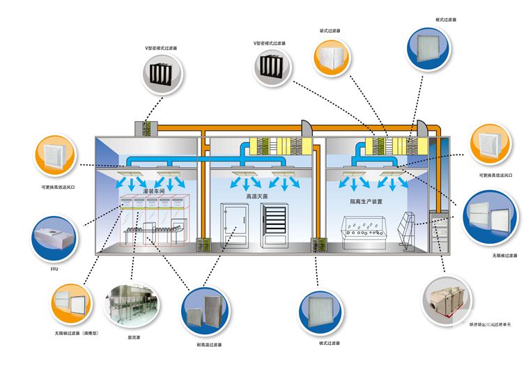 CFDA对国内药企GMP的目标是确保建立科学、严格的无菌药品生产环境、工艺、运行和管理体系。最严格地控制细菌、灰尘,生产出对社会大众最安全的药物产品。美埃为客户提供完整的系统空气净化方案和产品,有效阻挡外界大气污染,改善内部空气清洁,防止洁净环境的二次污染。美埃每一款产品从研发到生产到安装售后,都秉承客户为主的原则,全身心满足客户的每一个要求。制药行业的非标准严要求正是美埃人优势的体现。
